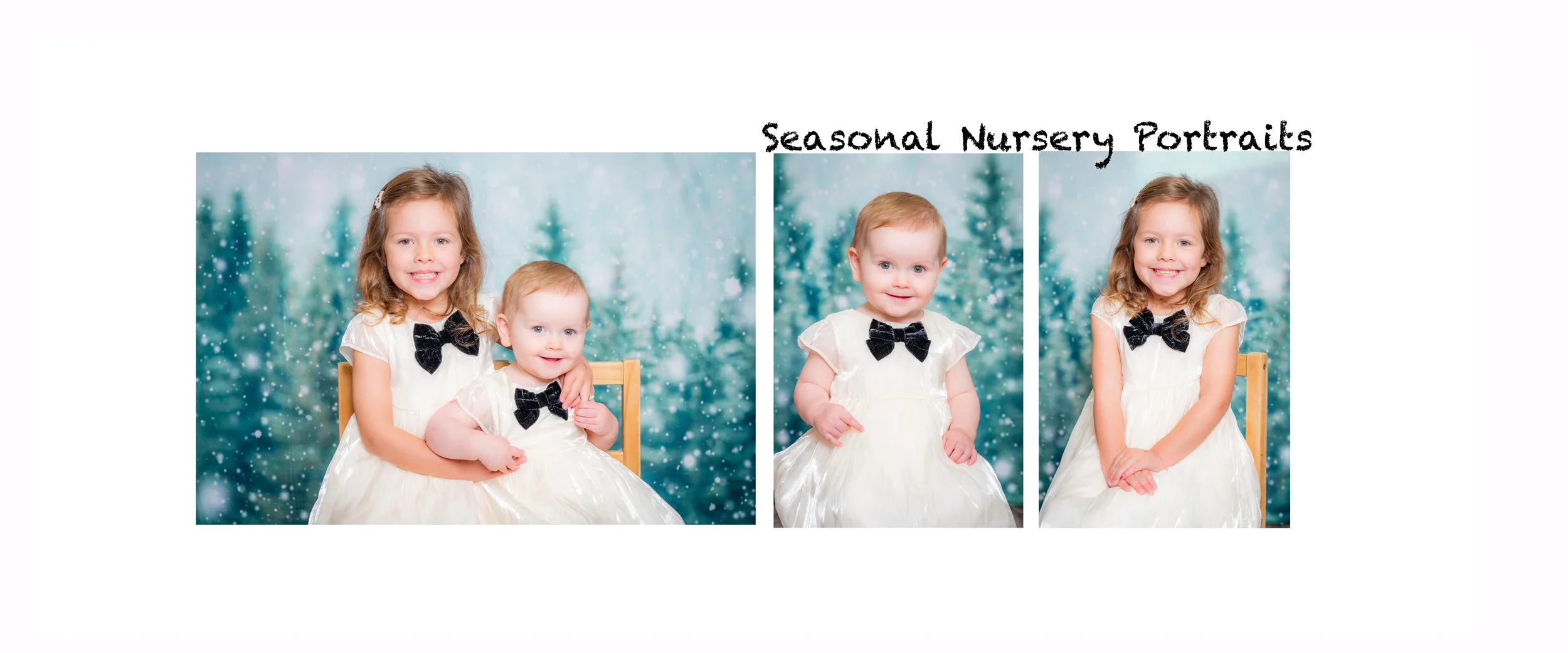 Whether a nursery school has 20 or 120 children we can offer a range of seasonal portraits. The most popular seasons include spring and winter. Our backdrop choices reflect a subtle representation of the season. Our main reason for this is so our customers can choose to display their photos throughout the year. Our range of choices is always growing so get in touch to view our full collection.